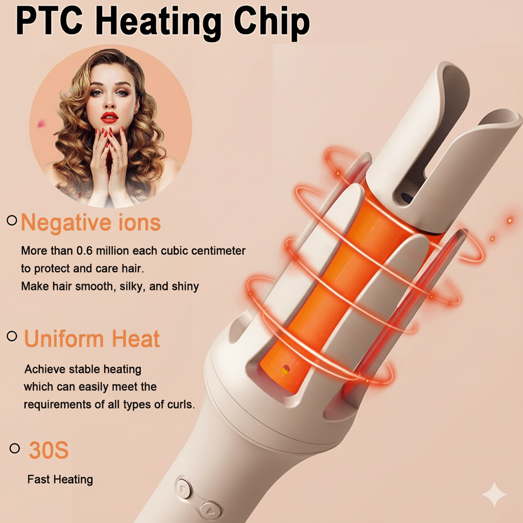 - 3. Press the button — the barrel will automatically rotate and wrap your hair.
