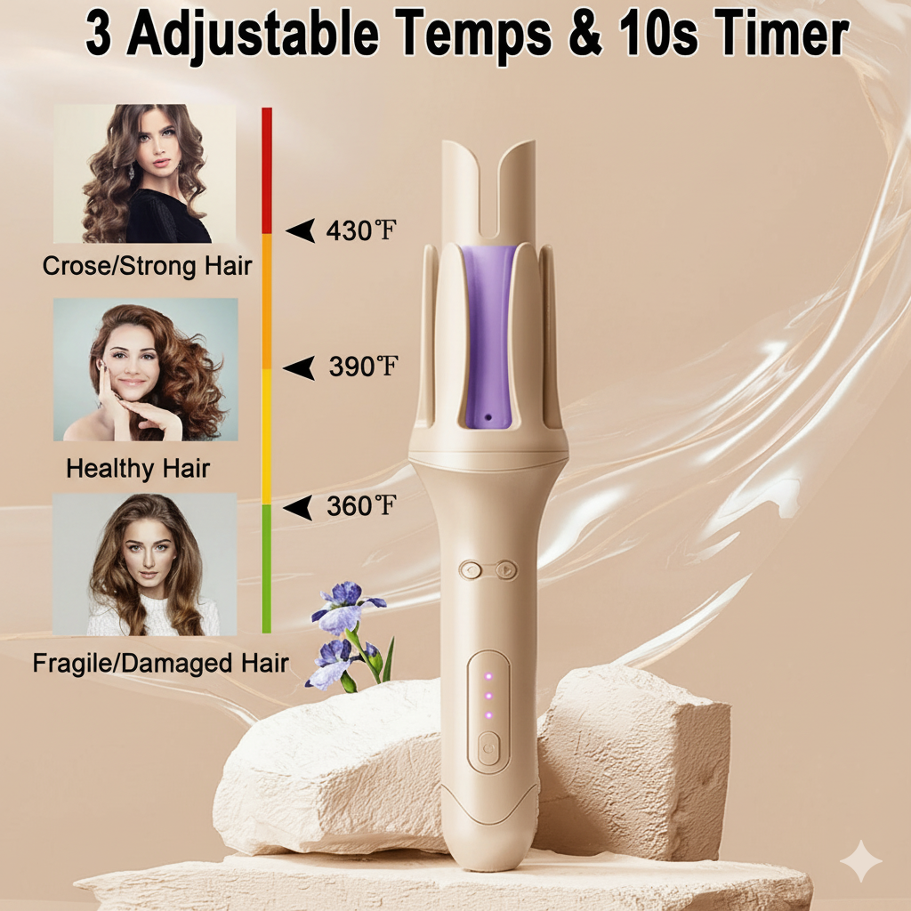 - 1. Plug in the curler and select your desired temperature (320°F for thin, 356°F for normal, 392°F for thick hair).